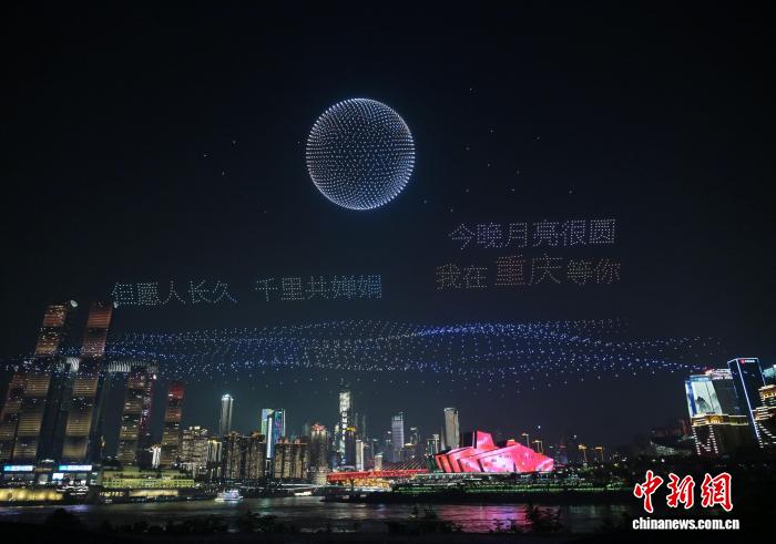 中秋明月夜 无人机灯光秀点亮重庆夜空